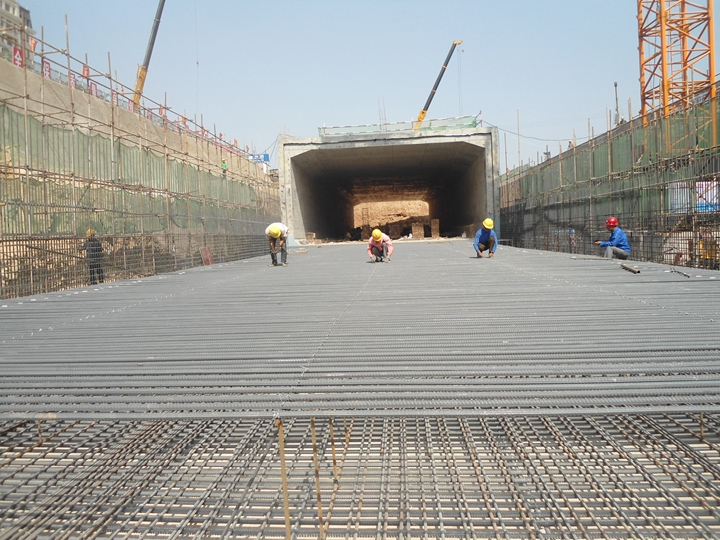 道路工程起于文莊路,地塹部分左線ZK0+725-ZK0+886.65,全長161.65m,右線YK0+725-YK0+887.65,全長162.65m。地上部分北側(cè)BK1+375-BK2+025,全長650m,南側(cè)NK0+425-NK1+075,全長650m。道路橫斷面為:4米人行道+3.5米非機(jī)動(dòng)車道+3.0米綠化帶+14.75米機(jī)動(dòng)車道+13.75機(jī)動(dòng)車道+13.75機(jī)動(dòng)車道+14.75米機(jī)動(dòng)車道+3.0米綠化帶+3.5米非機(jī)動(dòng)車道+4米人行道。