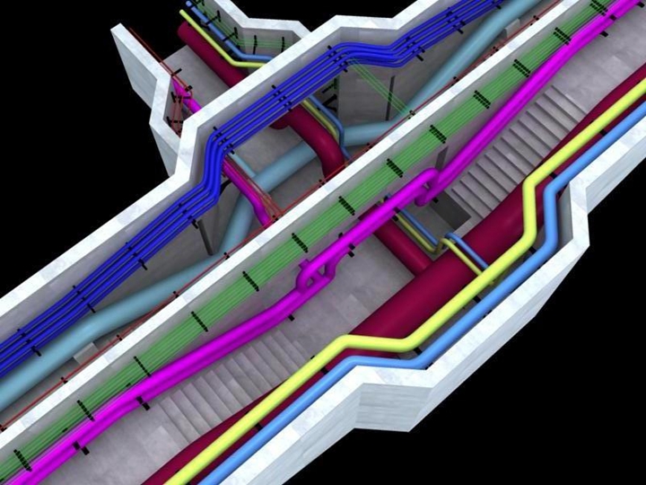 號線綜合溝設(shè)計、火炬大道綜合溝設(shè)計;中國海洋大學(xué)嶗山校區(qū)綜合溝設(shè)計;中國石油大學(xué)綜合溝設(shè)計等綜合溝設(shè)計。管溝內(nèi)包含電力電纜、通信電纜、給水管線、供熱管線、預(yù)留管線。